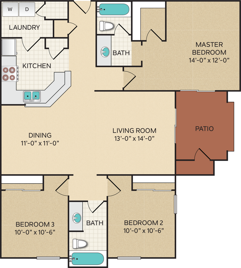 3 Beds, 2 Baths, 1308 sq ftAvailable Nov 1Model Gallery