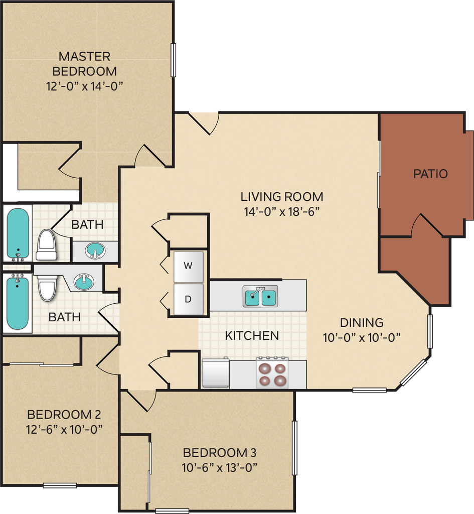 3 Beds, 2 Baths, 1212 sq ftAvailable NowModel Gallery
