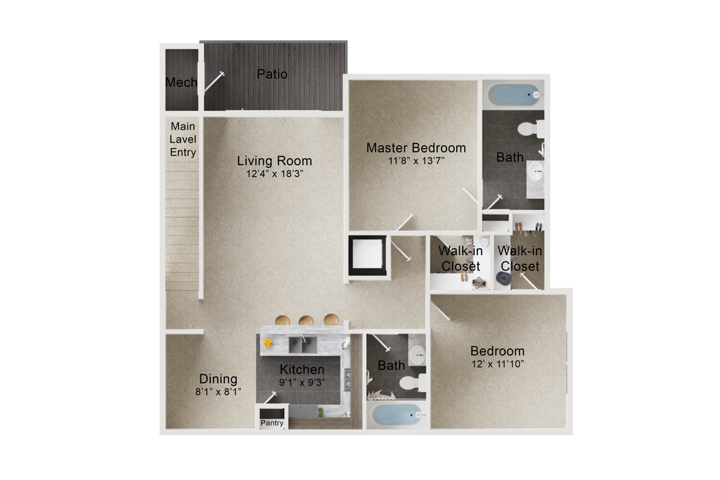 2 Beds, 1 Bath, 928 sq ftAvailable NowModel Gallery