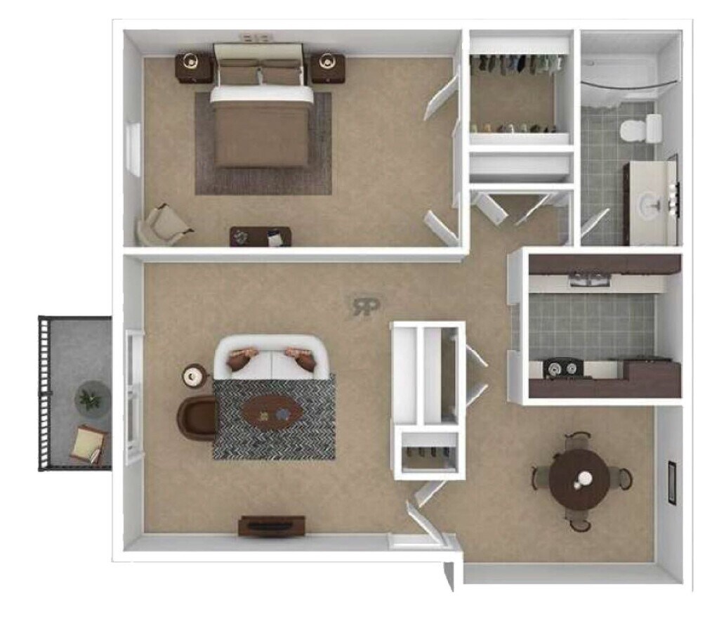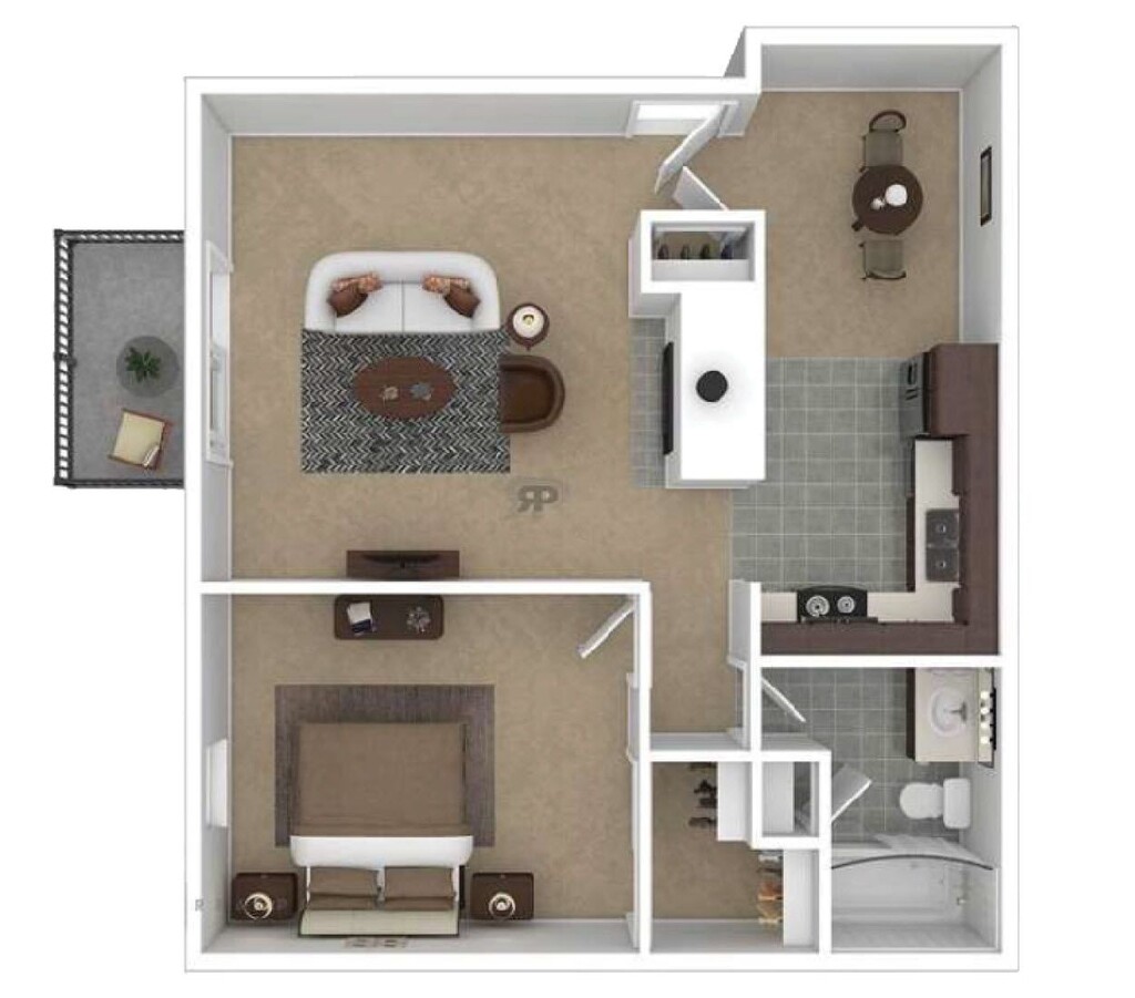 Apartment Model: 1 Bed 1 Bath | AFrom $8501 Bedroom, 1 Bath, 585 sq ftAvailable Now![]()