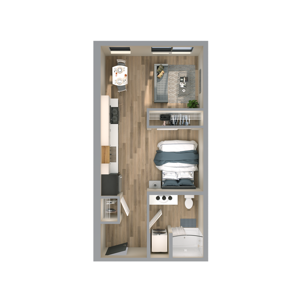 Studio, 1 Bath, 445 sq ftPlus FeesAvailable February 6, 2026Model Gallery