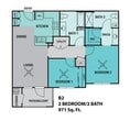 Apartment Model: 2 Bedroom B2From $4642 Bedroom, 2 Bath, 971 sq ftAvailable Now![]()