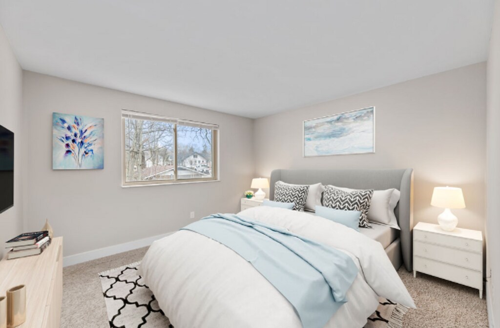 Call or text us today to schedule a tour! Important! The advertised rent amount is for the first three months of a new lease. After three months, the rent will be $1,150.00 This recently renovated open-concept 2-bedroom apartment is tucked away in the hills of Loveland. Overlooking the quaint downtown area, Overlook Apartments is just minutes from shops, restaurants, and the Little Miami Bike Trail. There is plenty of off-street parking and on-site laundry. Heat is included with the rent. A/C is controlled and paid for by the tenant. Pets are allowed with pet rent. No smoking. Background checks are required. A credit score of 650+ or a co-signer with 700+ is required. These photos show a unit at Overlook Apartments that is virtually staged and may not be available. Available units may have different but comparable cosmetic finishes.