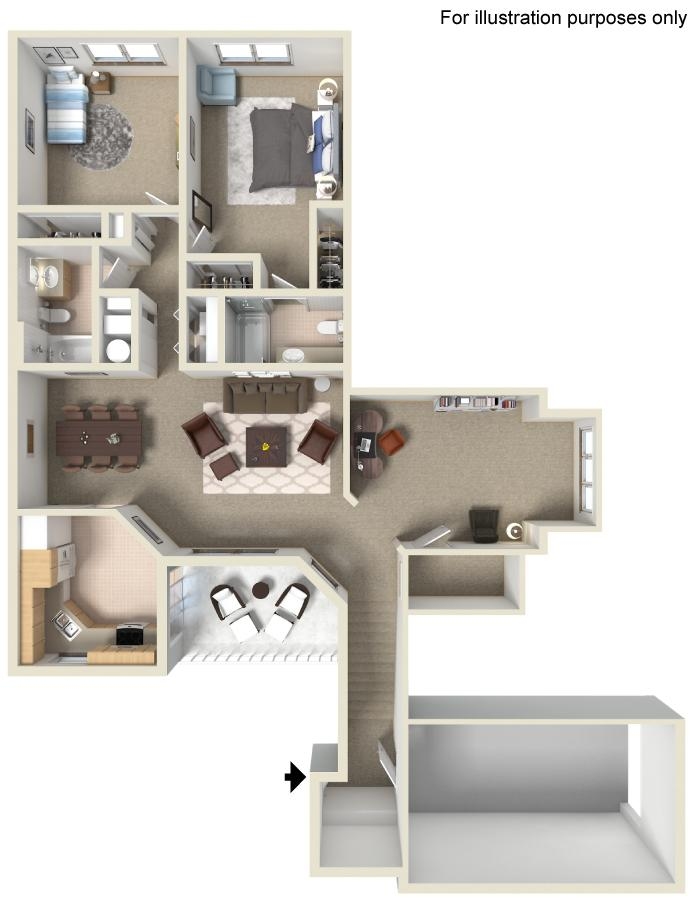2 Beds, 2 Baths, 1415 sq ftLargest 2 BedroomThis is the largest 2 Bedroom at this PropertyModel Gallery