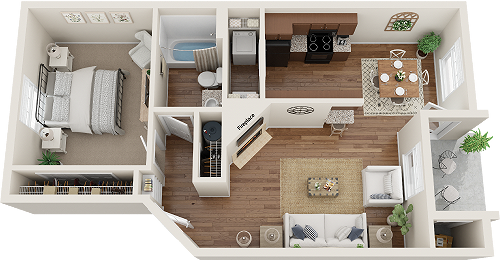 1 Bed, 1 Bath, 577 sq ftAvailable NowModel Gallery