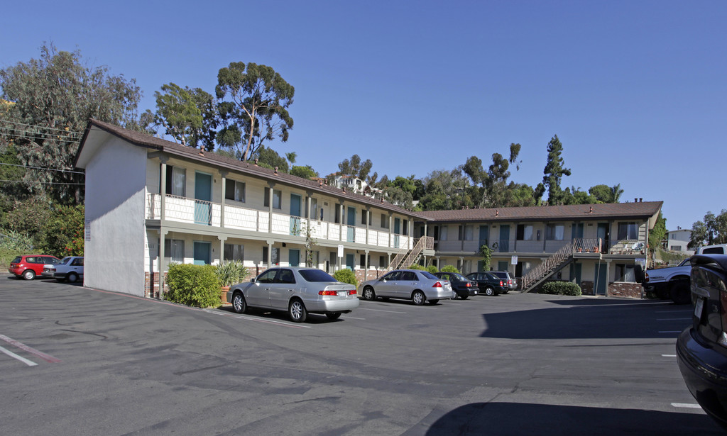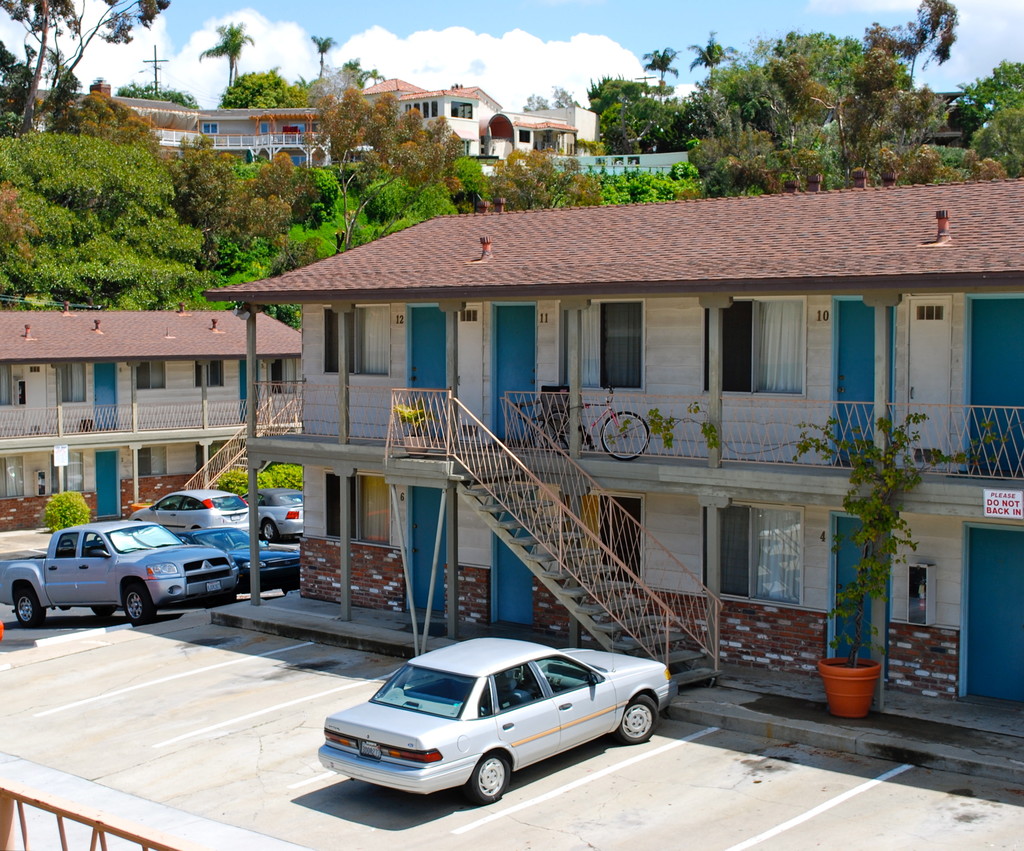 Located in the Old Town/Mission Hills area of San Diego, we are sited in a wooded area overlooking Lindberg Field and San Diego Harbor, and above the India Street colony near Washington and India Streets. We feature small, unfurnished studios and studio alcoves. The alcoves are larger studios with separate living room and bedroom set-ups. We are at the top of a big hill, but are close to all the best that San Diego has to offer - Old Town, downtown San Diego, Balboa Park, the Harbor areas, etc