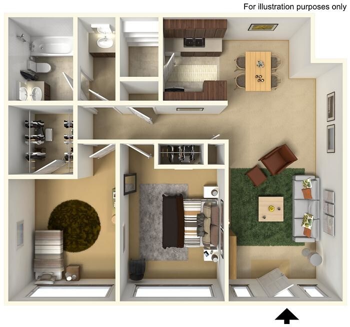 1 Bed, 1 Bath, 621 sq ftModel Gallery