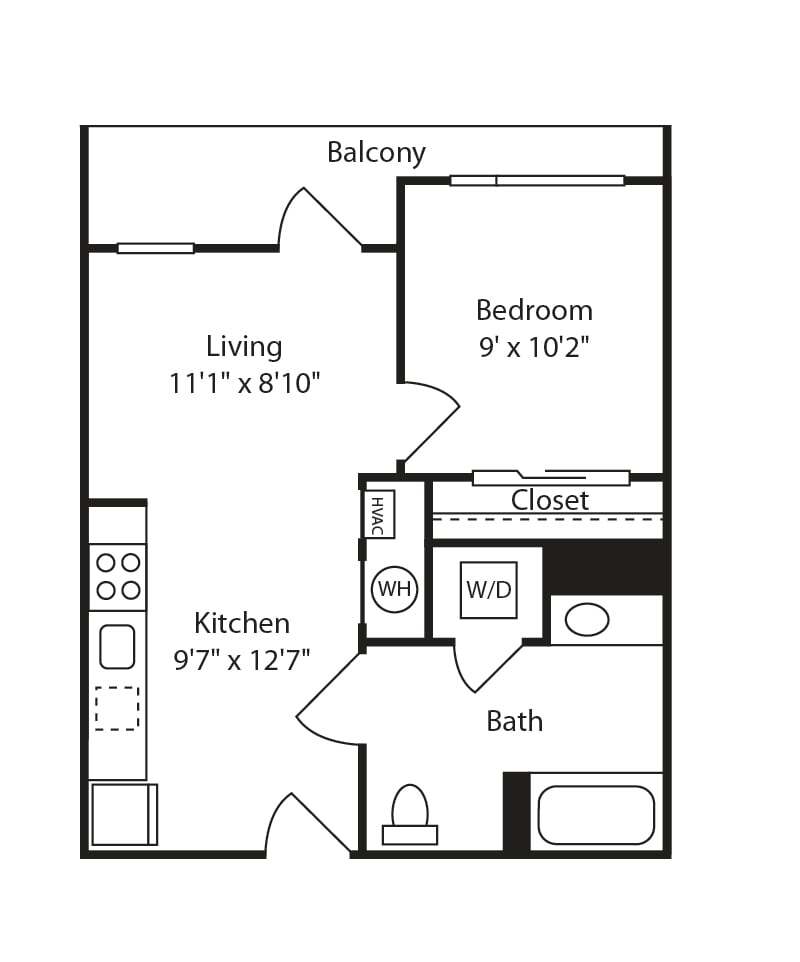 Studio, 1 Bath, 434 sq ftTotal Monthly PriceAvailable NowModel Gallery