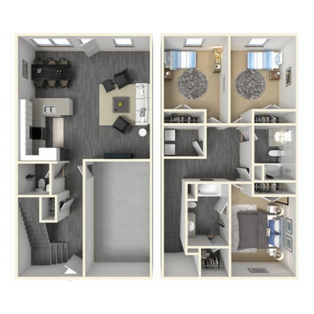 2 Beds, 2.5 Baths, 1260 sq ftModel Gallery