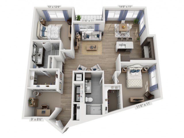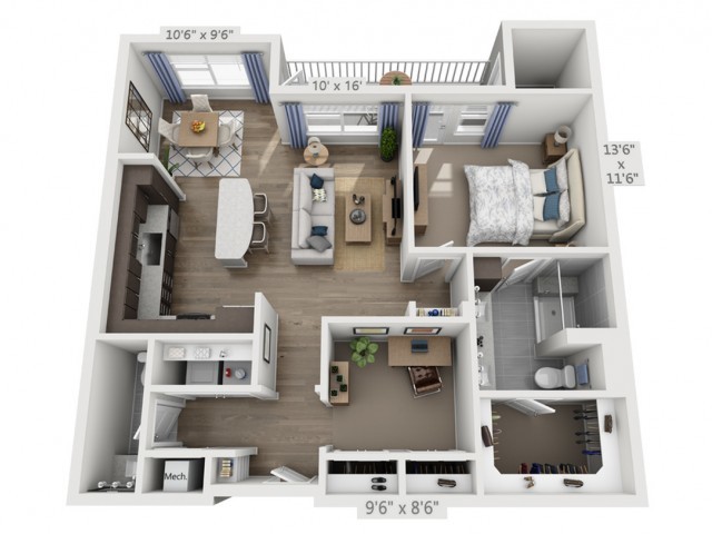 1 Bed, 1.5 Baths, 990 sq ftAvailable NowLargest 1 BedroomThis is the largest 1 Bedroom at this PropertyModel Gallery