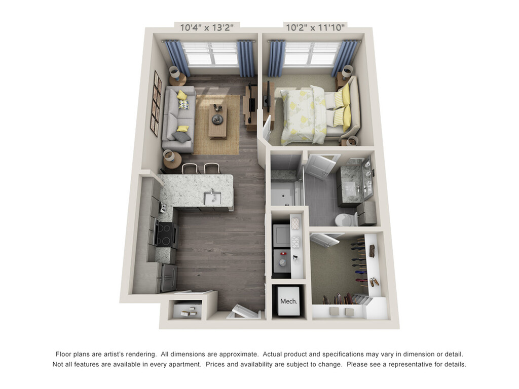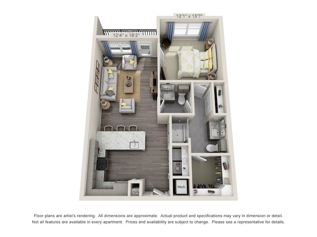 Apartment Model: Cape FearFrom $1,6101 Bedroom, 1 Bath, 598 sq ftAvailable NowFloor plans are artist's rendering. All dimensions are approximate. Actual product and specifications may vary in dimension or detail. Not all features are available in every rental home. Prices and availability are subject to change. Base rent is based on monthly frequency. Additional fees may apply, such as but not limited to package delivery, trash, water, amenities, etc. Deposits vary. Please see a representative for details.