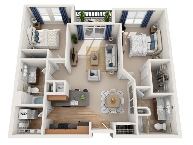 2 Beds, 2 Baths, 1035-1095 sq ftModel Gallery