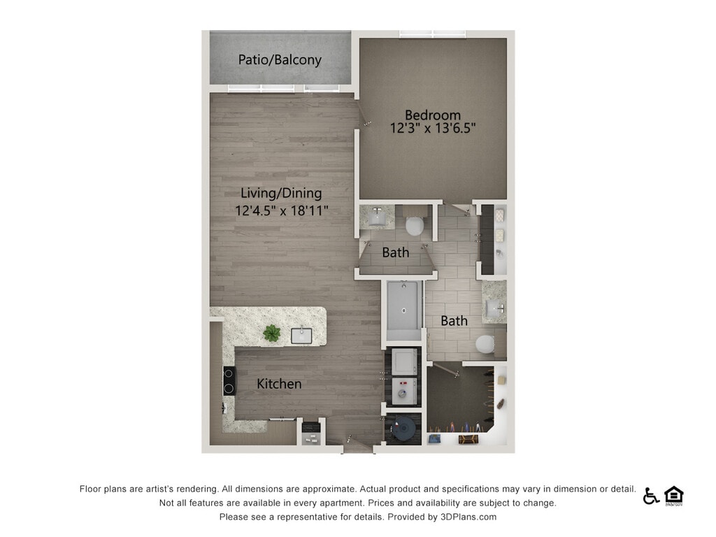 B1B - Floorplan 1 Floor plans are artist's rendering. All dimensions are approximate. Actual product and specifications may vary in dimension or detail. Not all features are available in every rental home. Prices and availability are subject to change. Base rent is based on monthly frequency. Additional fees may apply, such as but not limited to package delivery, trash, water, amenities, etc. Deposits vary. Please see a representative for details.