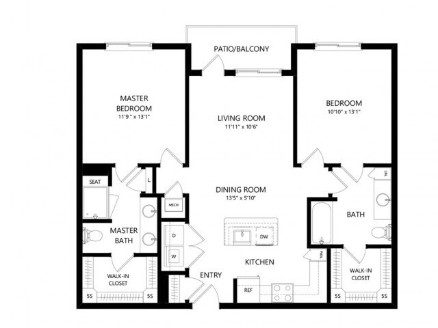 A7 - Floorplan 1 Apartment Unit: 310Apartment Model: A7From $2,0561 Bedroom, 1 Bath, 852 sq ftAvailable Now2 Bedrooms