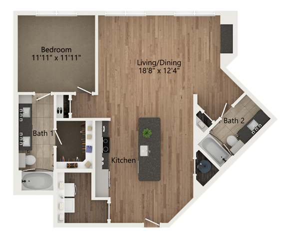 1 Bed, 1 Bath, 663 sq ftAvailable NowModel Gallery