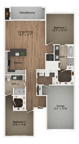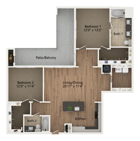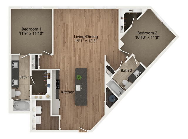 1 Bed, 1 Bath, 675 sq ftAvailable NowModel Gallery