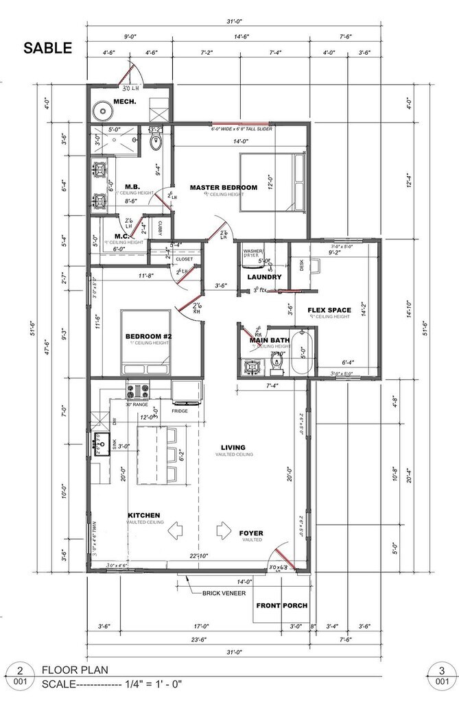 The Sable - 2 Bedroom - Floorplan 1 3 Bedrooms