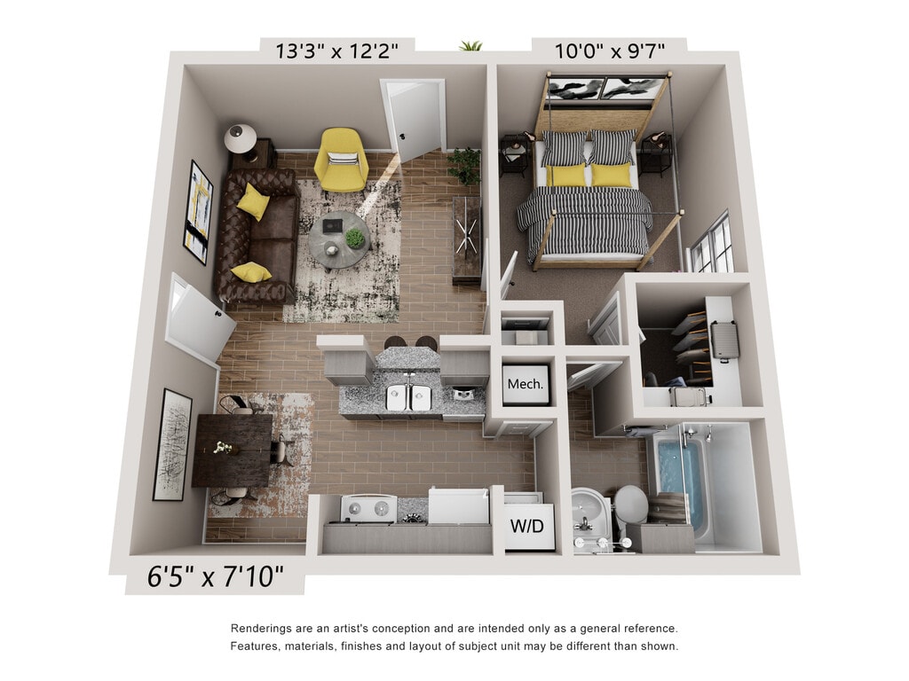 1 Bed, 1 Bath, 605 sq ftAvailable NowModel Gallery