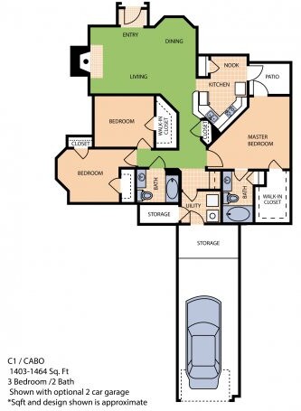 Apartment Model: The CaboCall For Rates3 Bedroom, 2 Bath, 1403 sq ftUnavailable![]() - The Cabo - Floorplan 1