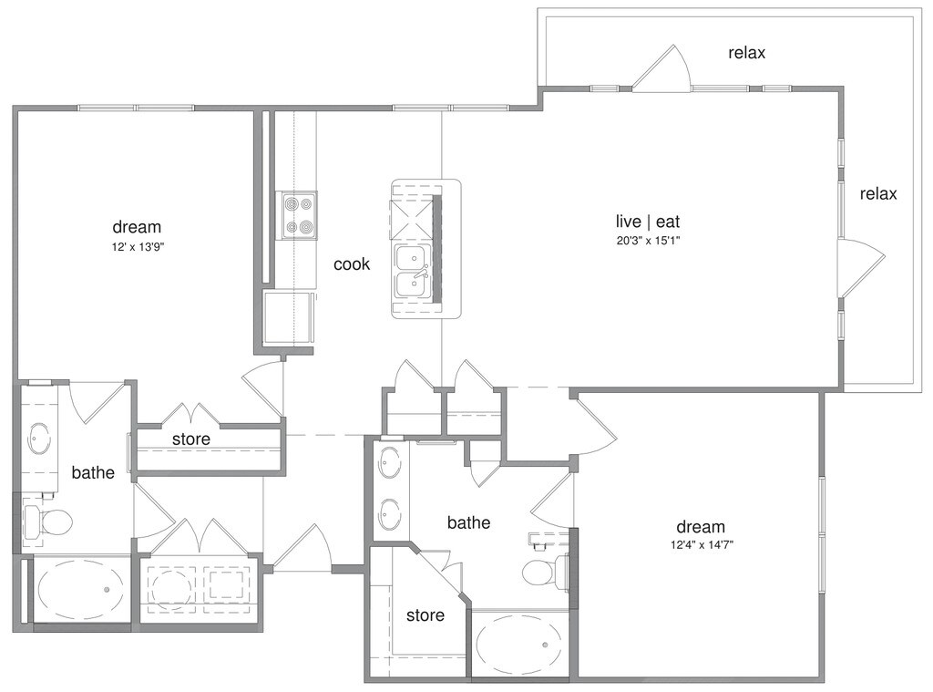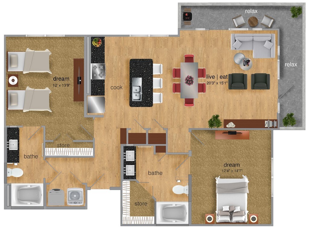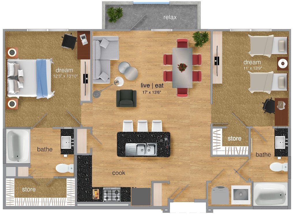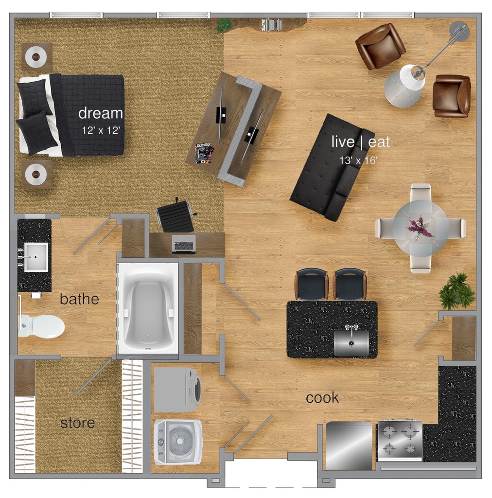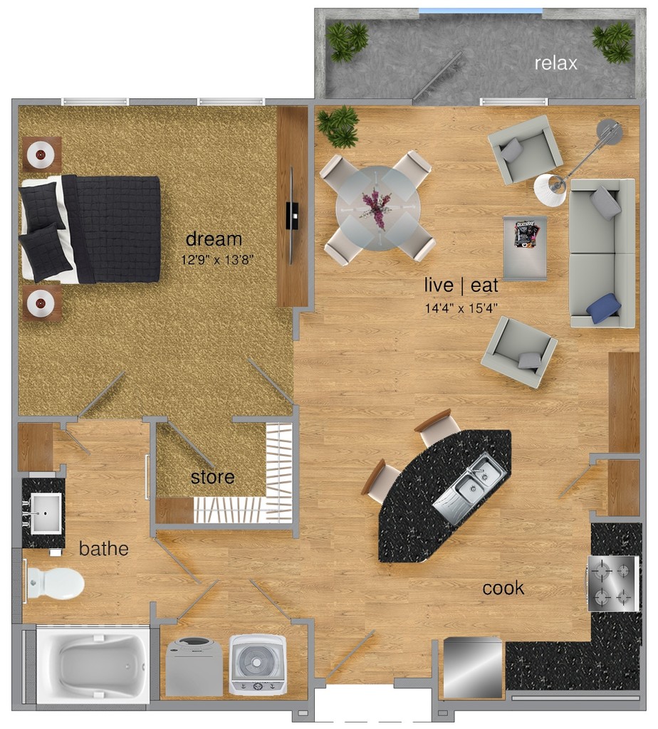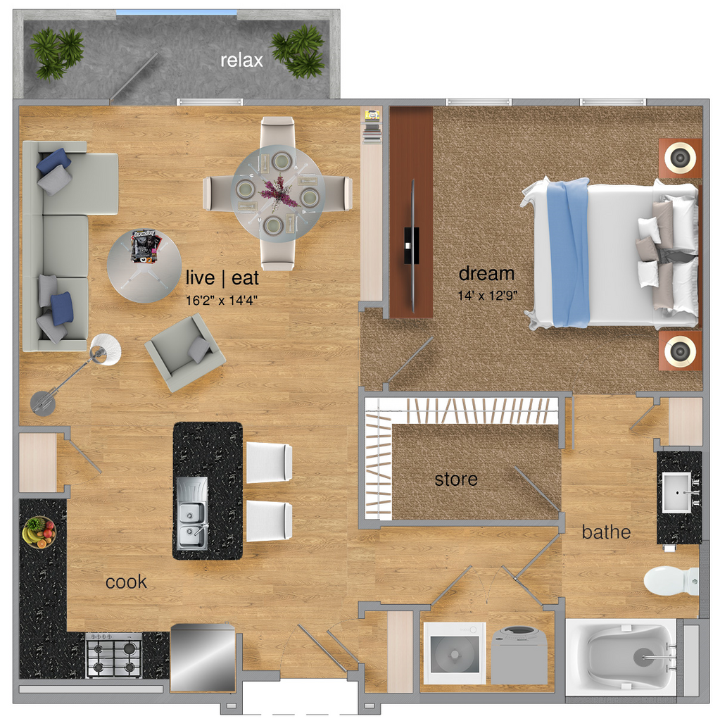 1 Bed, 1 Bath, 750 sq ftModel Gallery