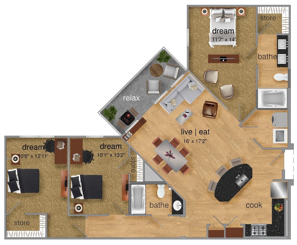 1 Bedroom to 3 Bedroom Apartments at Oxford at the Boulevard currently range from $1,295 to $2,070
