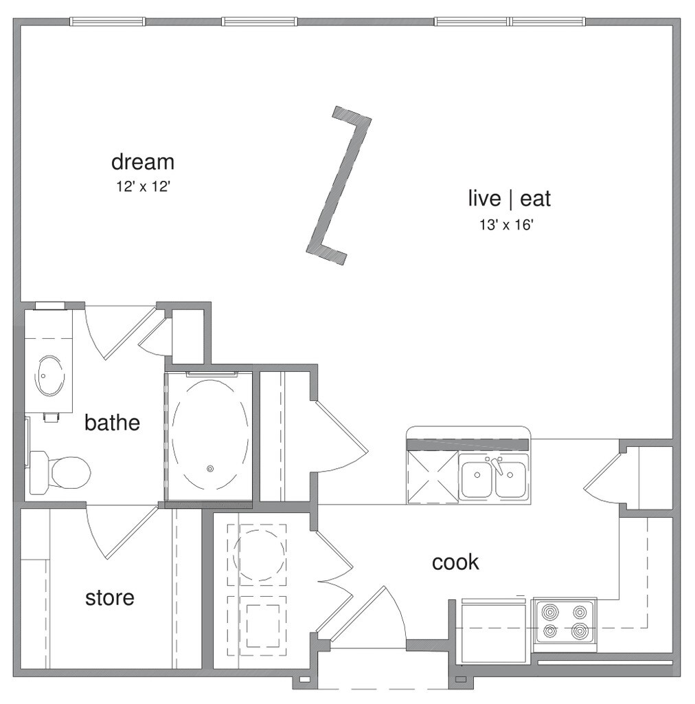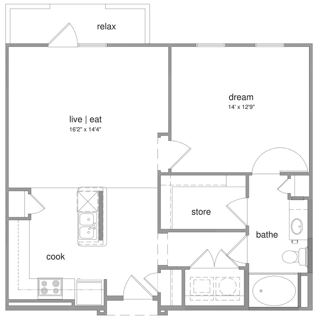 Apartment Model: One-bedroom One Bath$1,2951 Bedroom, 1 Bath, 680 sq ftAvailable NowFloorplansPhotos![]()