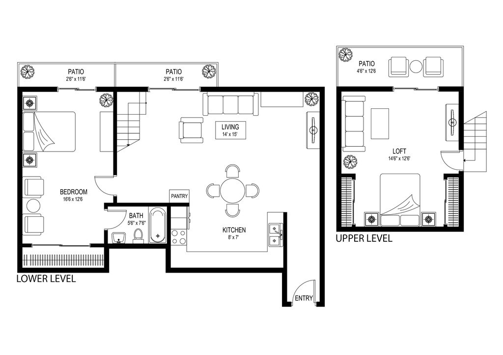 1 Bed, 1 Bath, 650 sq ftModel Gallery