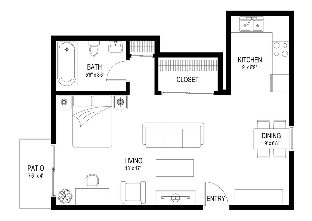 Studio, 1 Bath, 400 sq ftAvailable NowModel Gallery