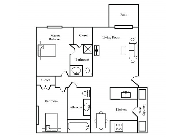 Apartment Model: 2x2BFrom $9502 Bedroom, 2 Bath, 950 sq ftUnavailableFloorplansPhotos![]()