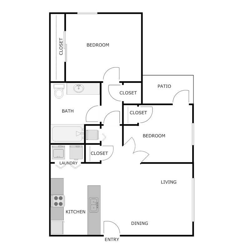 Apartment Model: 2 Bedroom 1 Bathroom2 Bedroom, 1 Bath, 778 sq ftUnavailable![]()