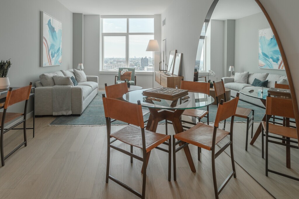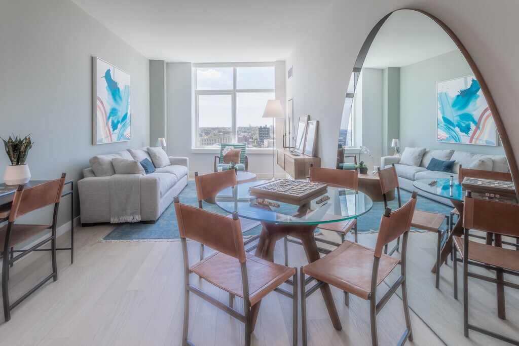 PLG stands as a striking 26-story luxury rental building, offering a range of studio to three-bedroom residences in the heart of Prospect Lefferts Gardens. As the tallest building in the neighborhood, it boasts expansive, oversized windows in every home, flooding interiors with natural light and offering breathtaking views of Prospect Park, the New York City skyline, and beyond. Each residence is designed with modern elegance, featuring Caesarstone quartz countertops, stainless steel appliances, in-home washers and dryers, spacious bathrooms, generous closets, and smart home technology, including keyless entry. With over 50,000 square feet of premier amenities, PLG provides an unmatched lifestyle experience. Residents enjoy both indoor and outdoor facilities, including a rooftop swimming pool, outdoor BBQ grills, resident lounge, media room, fitness center, event space, TULU service, outdoor half-basketball court, dog run, sauna, and an indoor swimming pool. Whether for relaxation or recreation, PLG offers a comprehensive array of amenities designed to cater to all tastes and lifestyles.