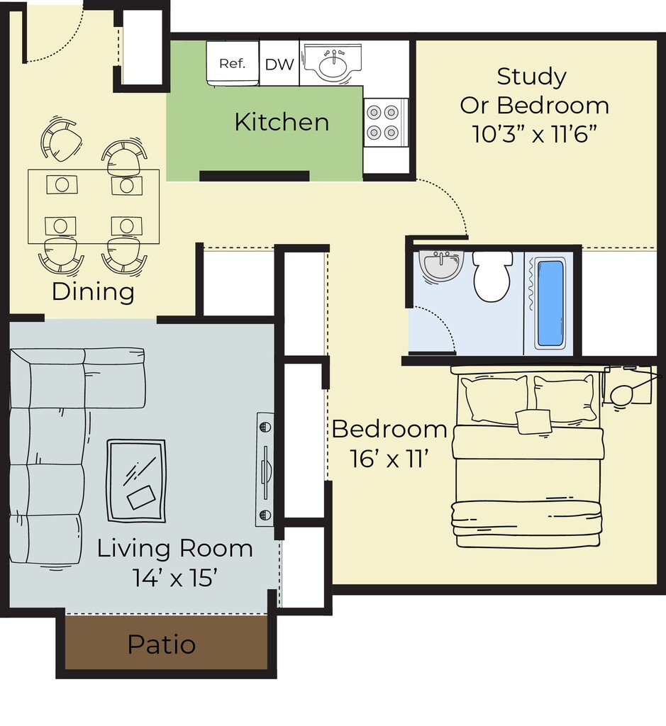 Apartment Model: Dog Friendly Melrose1 Bedroom, 1 Bath, 650 sq ftUnavailableDog Friendly Melrose - Floorplan 1 The Melrose
