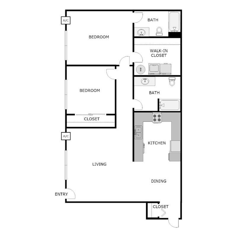 2 Beds, 2 Baths, 1186 sq ftLargest 2 BedroomThis is the largest 2 Bedroom at this PropertyModel Gallery