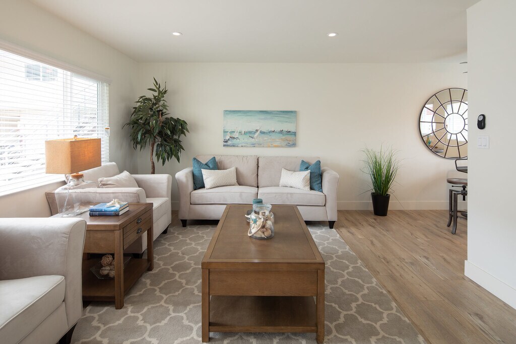 Exterior receiving a fresh and modern make over with: BRAND NEW GATED POOL and BBQ AREA, Siding, Roof, Windows, Front entrance controlled access gate and new landscaping! New Copper Plumbing and Some New Sewer Drain Lines! Recently Remodeled apartment comes with: Shaker white cabinets in the kitchen and bathrooms, grey quartz counters, tile floors in the bathroom, stylish wood laminate floors in the living room, kitchen & bedrooms, new tub and wall tile, Recessed lighting, STAINLESS STEEL APPLIANCES (dishwasher, range, microwave & refrigerator), fixtures and SMOOTH CEILINGS throughout! 5 MILES from the BEACH! 1 Garage parking spot with storage! View pics of similar staged unit remodel. Apartment comes unfurnished.