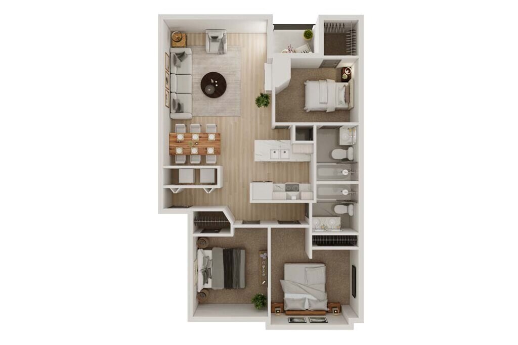254 3X2 T - Floorplan 5 Apartment Unit: F305Apartment Model: 254 3X2 T$2,1003 Bedroom, 2 Bath, 1150 sq ftAvailable Now