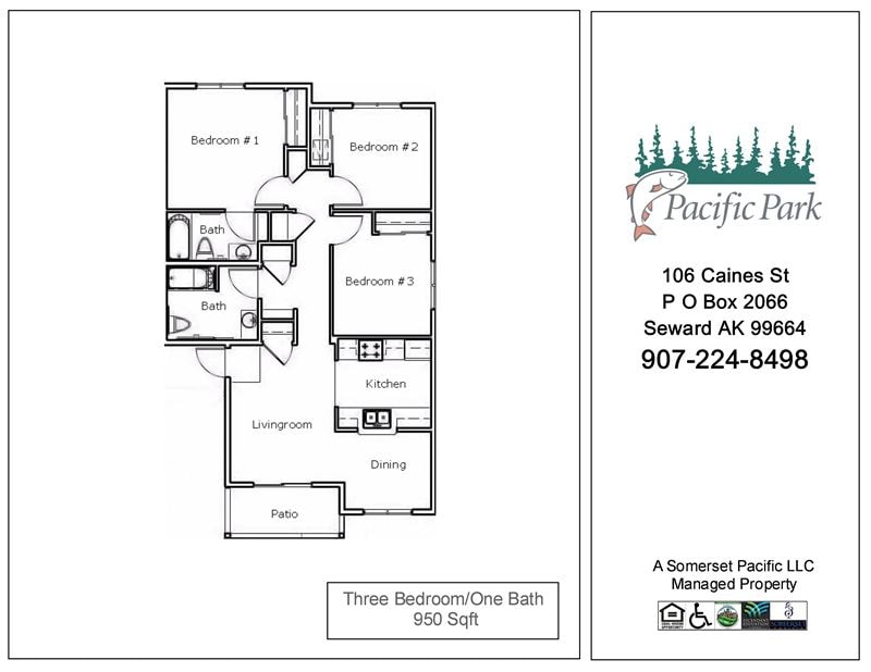 Apartment Model: 3 Bedroom3 Bedroom, 2 Bath, 950 sq ftUnavailableFloorplansPhotos![]()