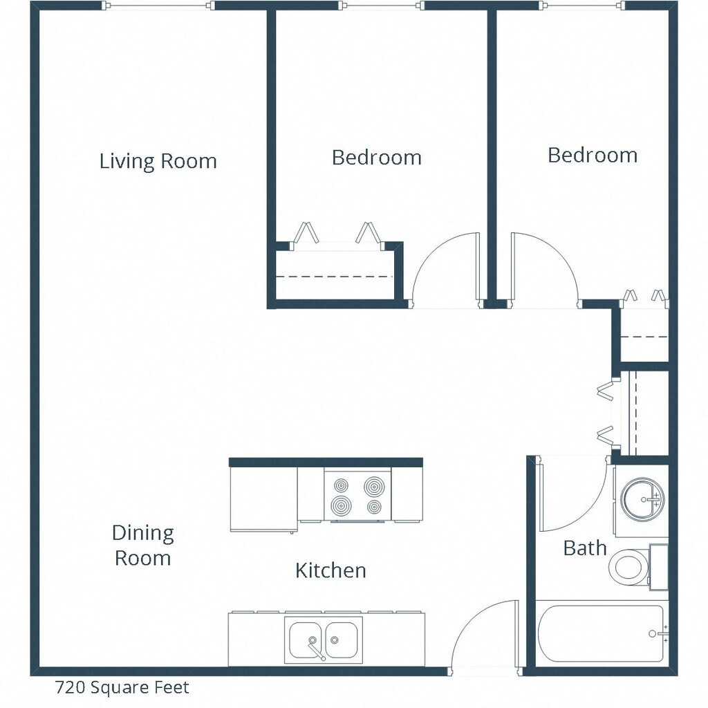 Apartment Model: Two Bedroom 21C2 Bedroom, 1 Bath, 720 sq ftAvailable November 1, 2025![]()