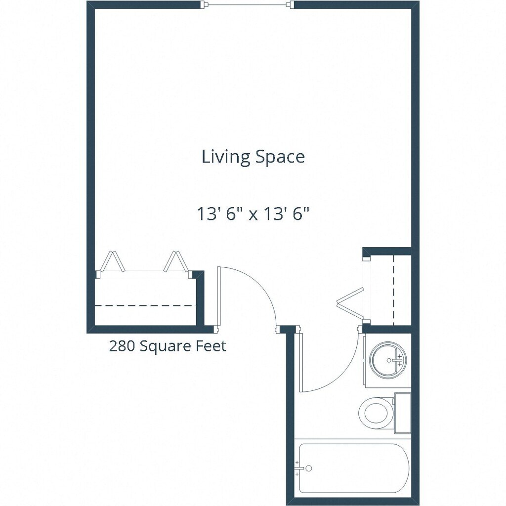 Studio, 1 Bath, 280 sq ftAvailable NowModel Gallery