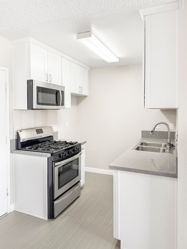 Enjoy this renovated one-bedroom apartment in a safe, quiet neighborhood within the award-winning Temple City School District. Features upgraded white shaker cabinets, quartz countertops, and stainless steel gas appliances including microwave hood and dishwasher. Tile and laminate flooring throughout, plus air conditioning for year-round comfort. Located in a gated community with one covered parking space. Pet-friendly (monthly pet rent applies).