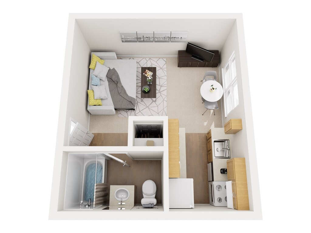 Studio, 1 Bath, 380 sq ftAvailable NowModel Gallery