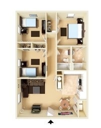 Apartment Model: 2 Bedroom 1 Bath$8002 Bedroom, 1 Bath, 650 sq ftAvailable Now2 Bedroom 1 Bath - Floorplan 1 3 Bedrooms