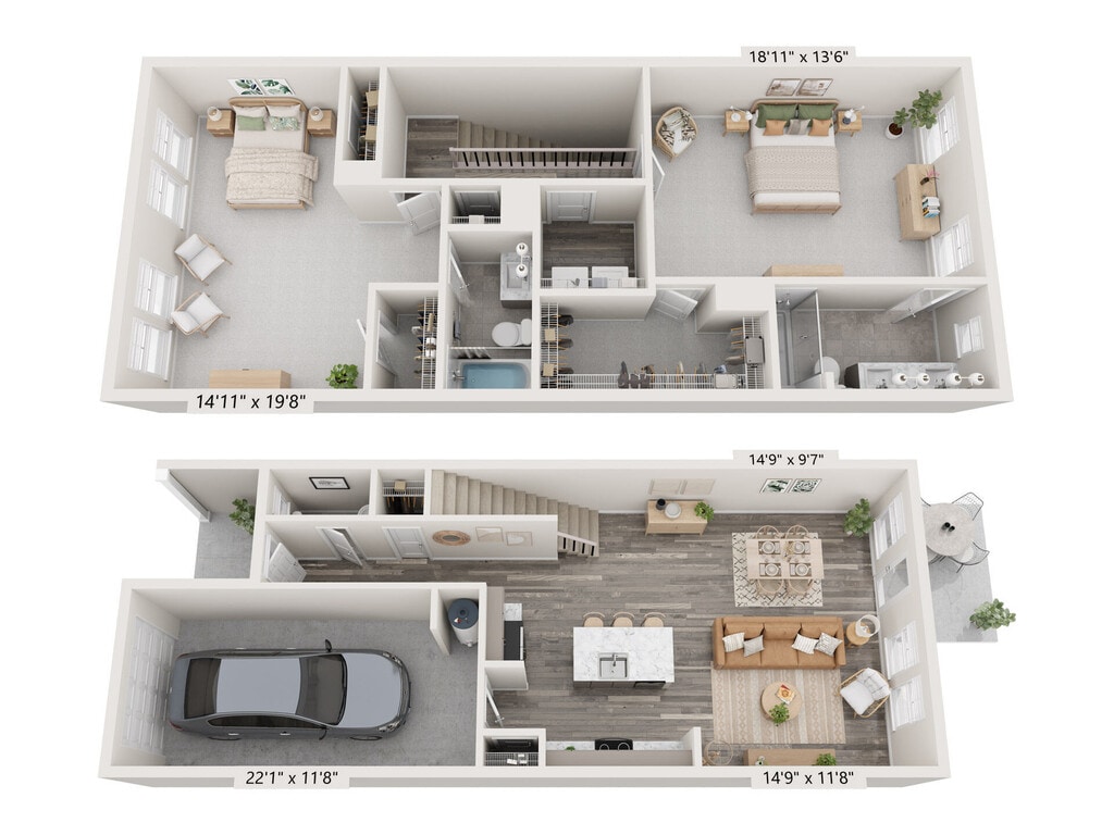 2 Beds, 2.5 Baths, 1581 sq ftModel Gallery
