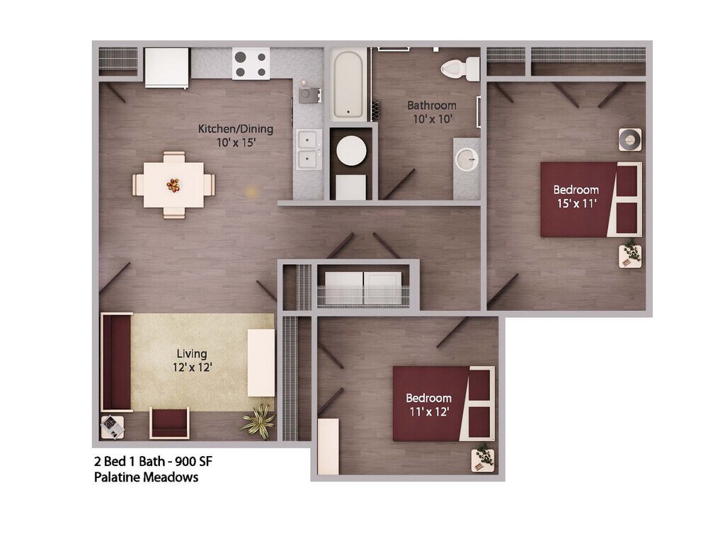 2 Beds, 1 Bath, 900 sq ftModel Gallery