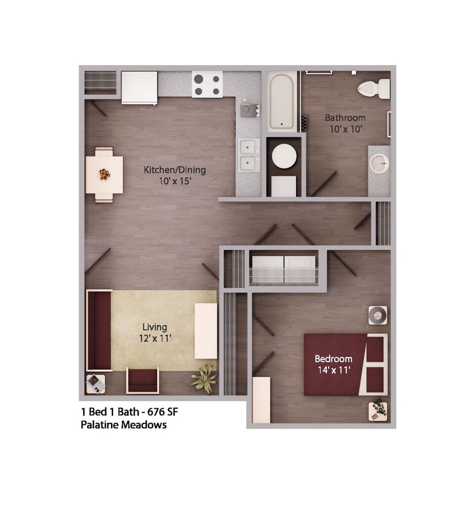 1 Bed, 1 Bath, 676 sq ftModel Gallery