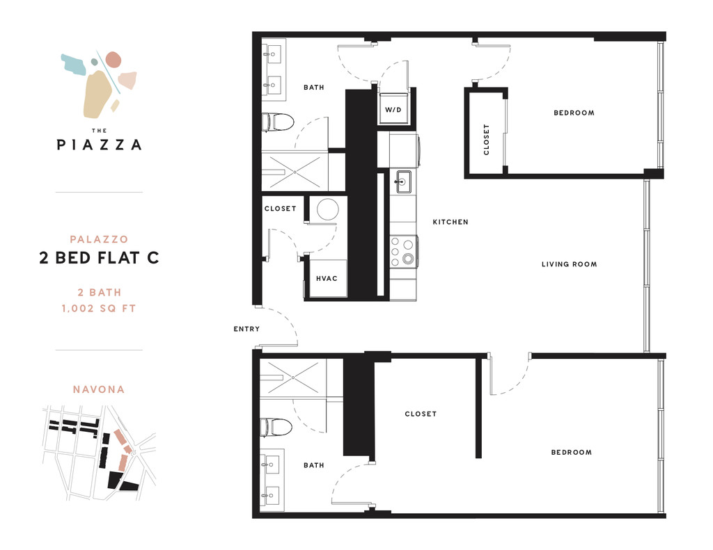 Availability Date Unit Sq Ft Unavailable 2 Bedroom Flat C Navona 1002 sq ft Apartment Model: 2 Bedroom Flat C Navona2 Bedroom, 2 Bath, 1002 sq ftUnavailableFloorplansPhotos![]()