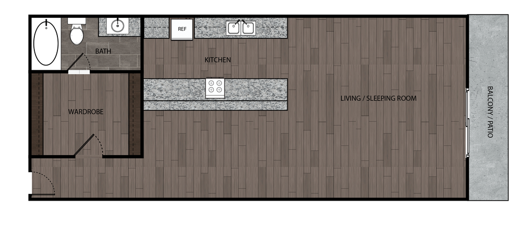 Studio, 1 Bath, 448-506 sq ftAvailable NowModel Gallery