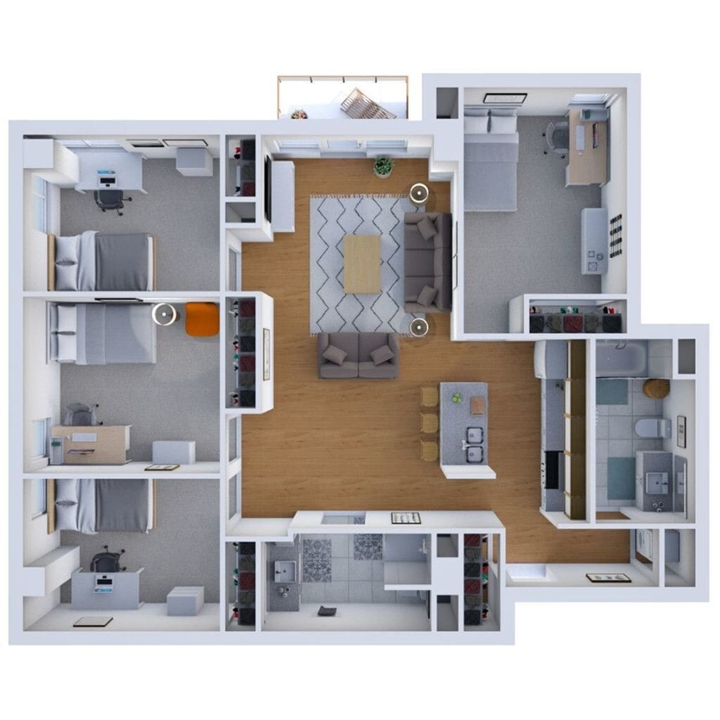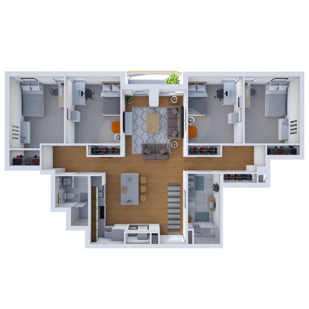 - 4 Bedrooms- Floorplan 4E- From $1,4004 Beds, 2 Baths, 1163 sq ftAvailable August 11, 2026- Model Gallery- Floorplans- Availability Details- Price - Availability Date - Unit - Sq Ft - View Details - $5,600 - August 11, 2026 - Entire Unit - 1163 - $1,400 - August 11, 2026 - Private - 1163 - Model Amenities and Features- Unique Features- Central Air