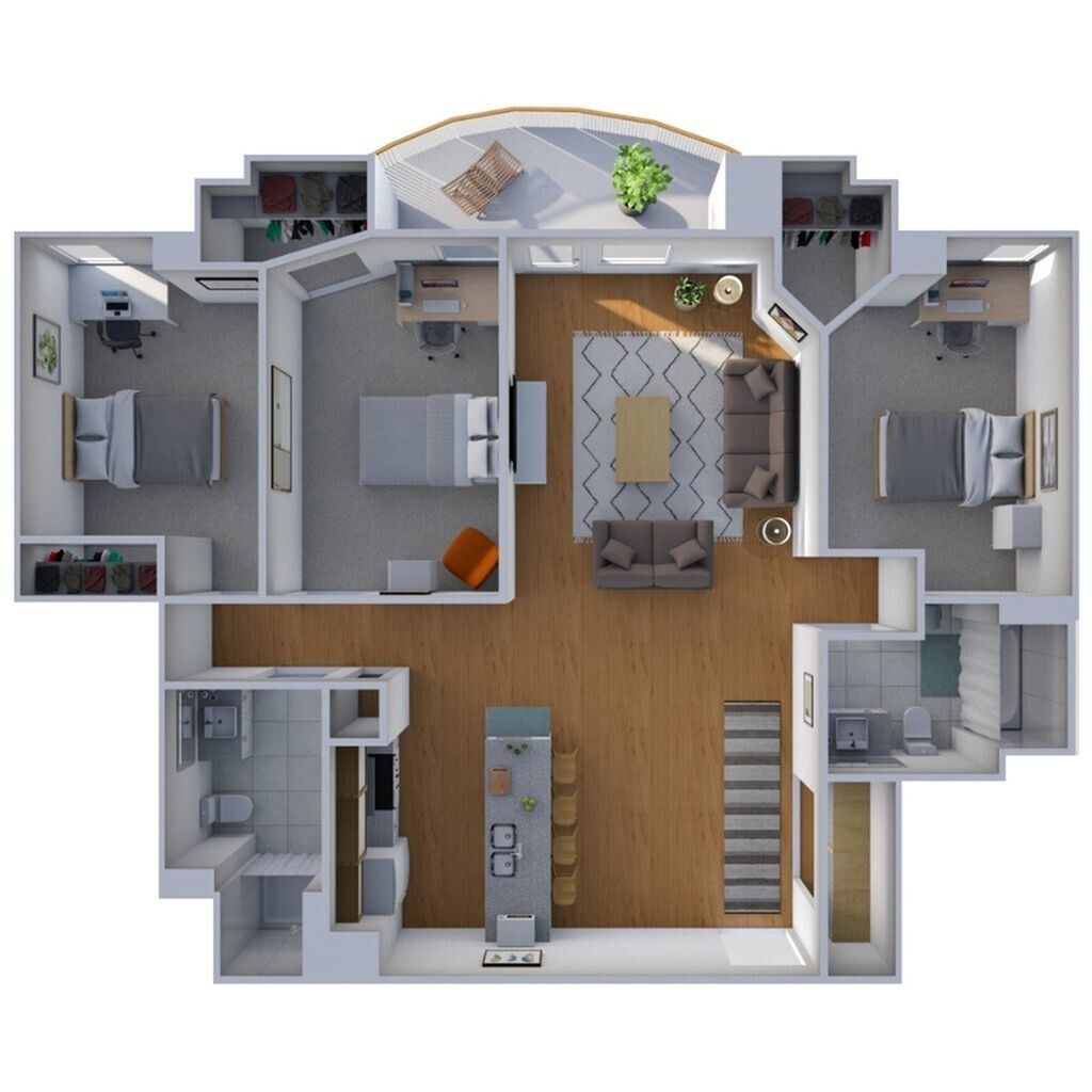 Apartment Model: 3DFrom $1,4103 Bedroom, 2 Bath, 1002 sq ftAvailable August 11, 2026![]() - 3D - Floorplan 1 Apartment Unit: Entire UnitApartment Model: 3D$4,2303 Bedroom, 2 Bath, 1002 sq ftAvailable August 11, 2026Apartment Unit: PrivateApartment Model: 3D$1,4103 Bedroom, 2 Bath, 1002 sq ftAvailable August 11, 2026- Floorplan 3A- From $1,4103 Beds, 2 Baths, 1051 sq ftAvailable August 11, 2026- Model Gallery- Floorplans- Availability Details- Price - Availability Date - Unit - Sq Ft - View Details - $4,230 - August 11, 2026 - Entire Unit - 1051 - $1,410 - August 11, 2026 - Private - 1051 - Model Amenities and Features- Unique Features- Central Air