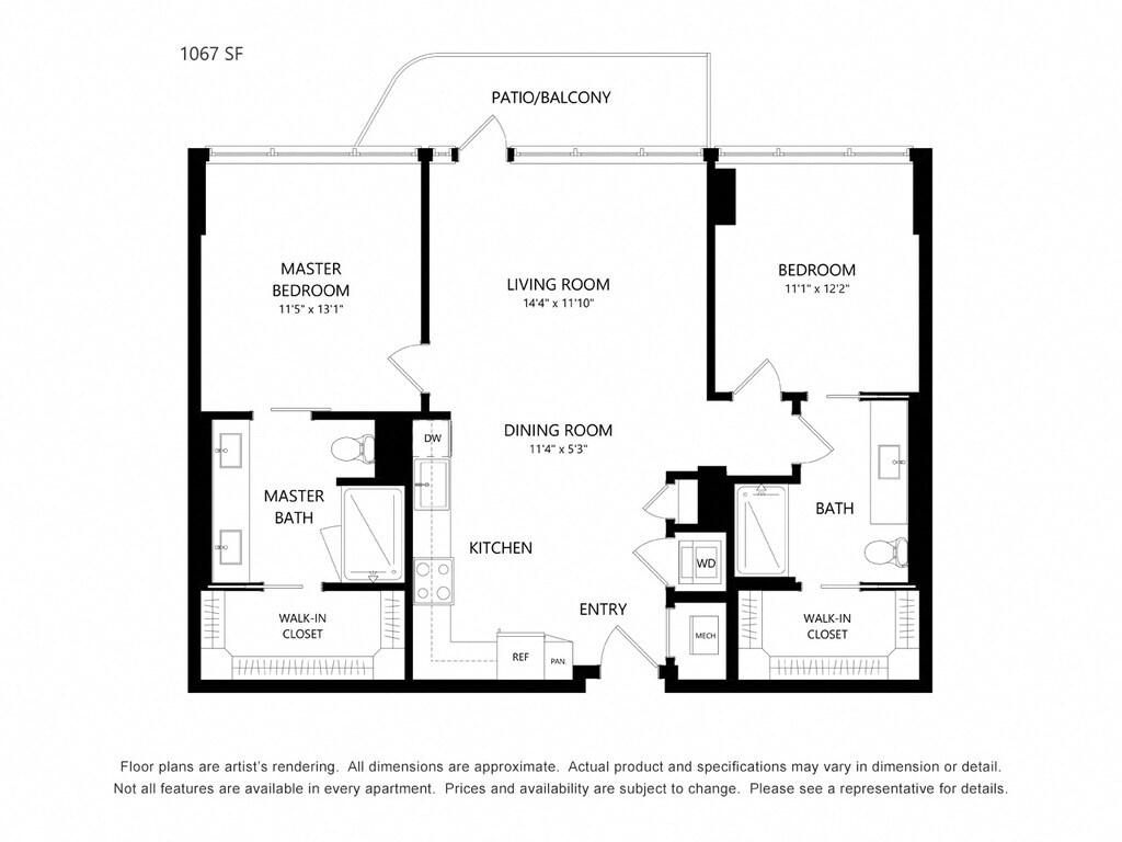 Apartment Model: 2 Bedroom ACall For Rates2 Bedroom, 2 Bath, 1067 sq ftUnavailableFloor plans are artist's rendering. All dimensions are approximate. Actual product and specifications may vary in dimension or detail. Not all features are available in every rental home. Prices and availability are subject to change. Base rent is based on monthly frequency. Additional fees may apply, such as but not limited to package delivery, trash, water, amenities, etc. Deposits vary. Please see a representative for details.