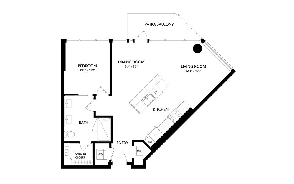 1 Bedroom A - Floorplan 8 Floor plans are artist's rendering. All dimensions are approximate. Actual product and specifications may vary in dimension or detail. Not all features are available in every rental home. Prices and availability are subject to change. Base rent is based on monthly frequency. Additional fees may apply, such as but not limited to package delivery, trash, water, amenities, etc. Deposits vary. Please see a representative for details.